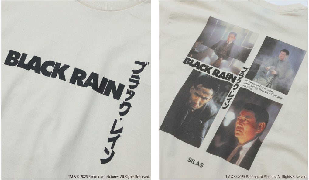 この度「SILAS(サイラス)」は、映画公開より35年を過ぎてもなおその特異な存在感で人々を魅了し続けるサスペンスアクション映画「BLACK RAIN(ブラック・レイン)」の世界観を落とし込んだTシャツコレクションを4月25日(金)に発売いたします。